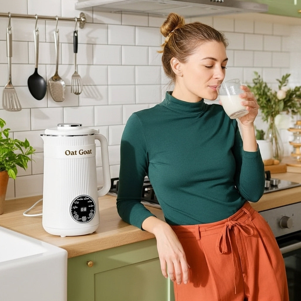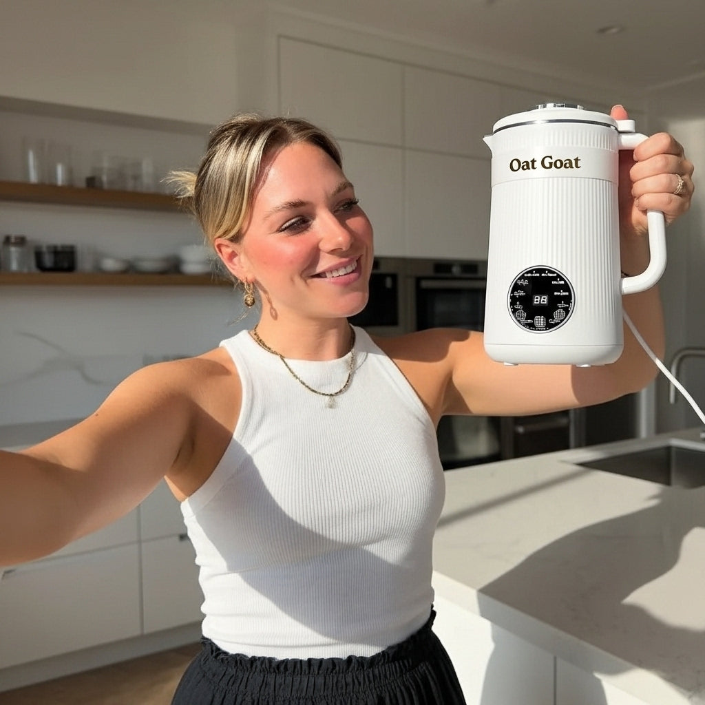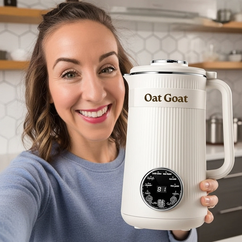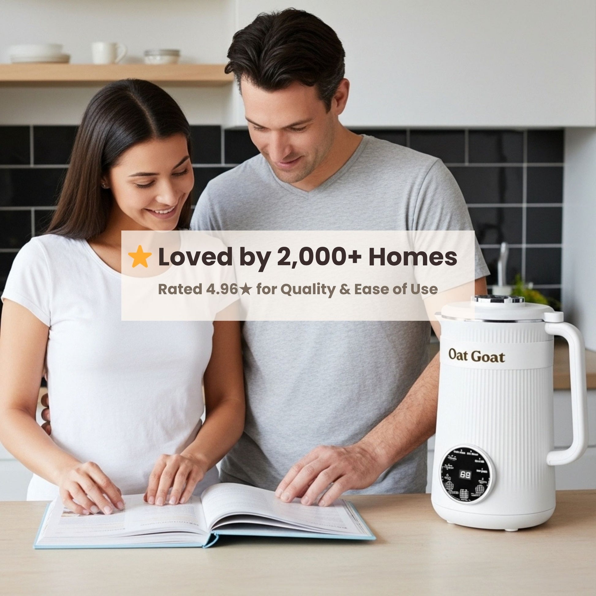 A: Oat Goat creates fresh, smooth plant-based milk in about 60 seconds. Just add your favorite oats, nuts, or seeds, and press start — no straining or mess required.